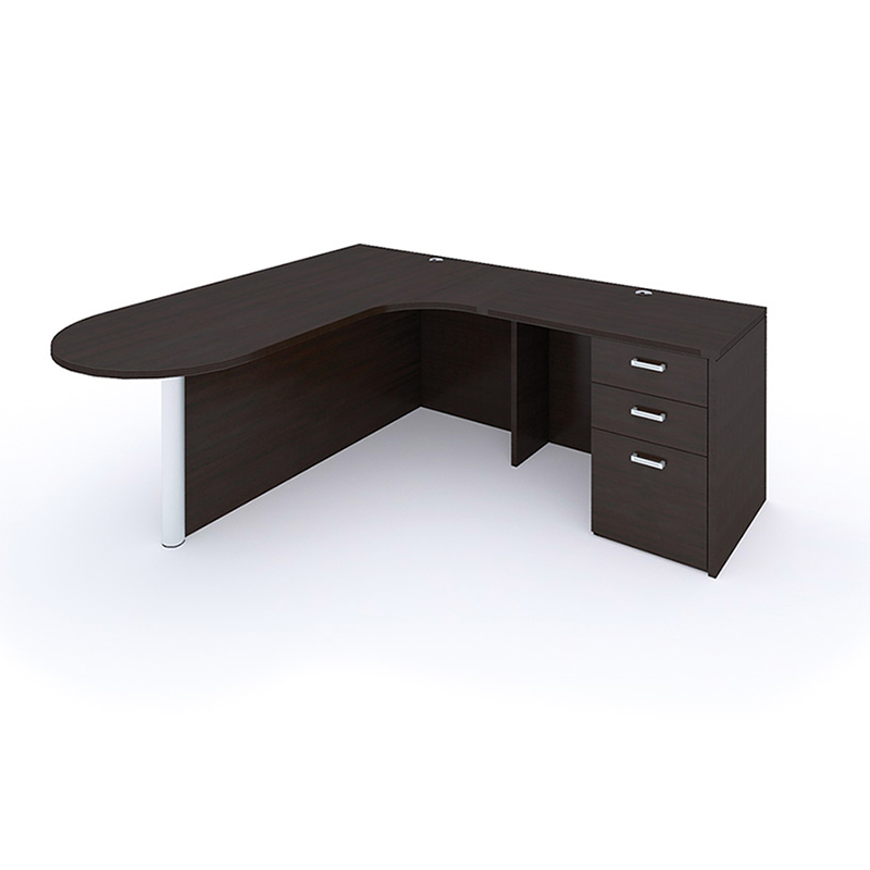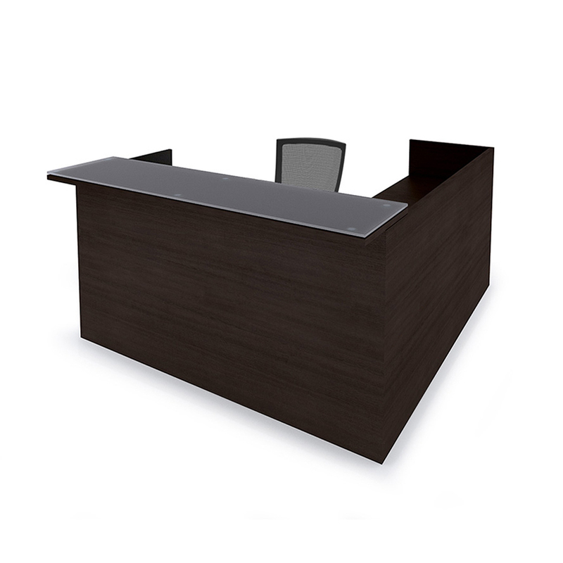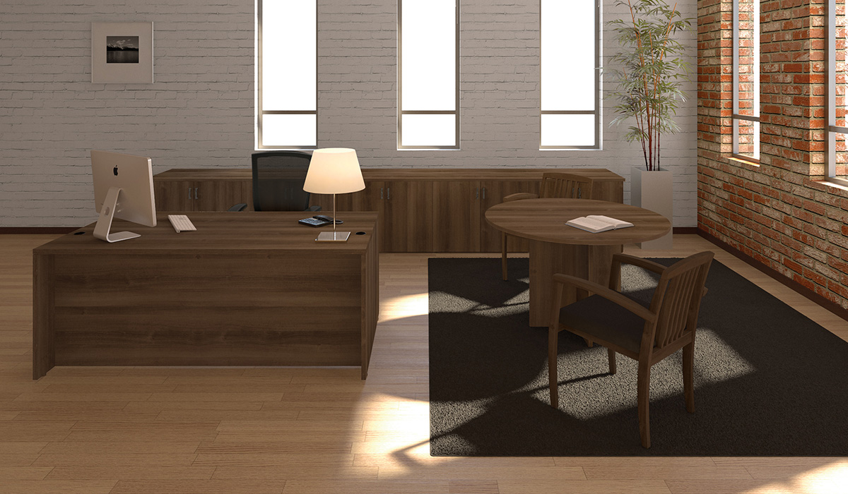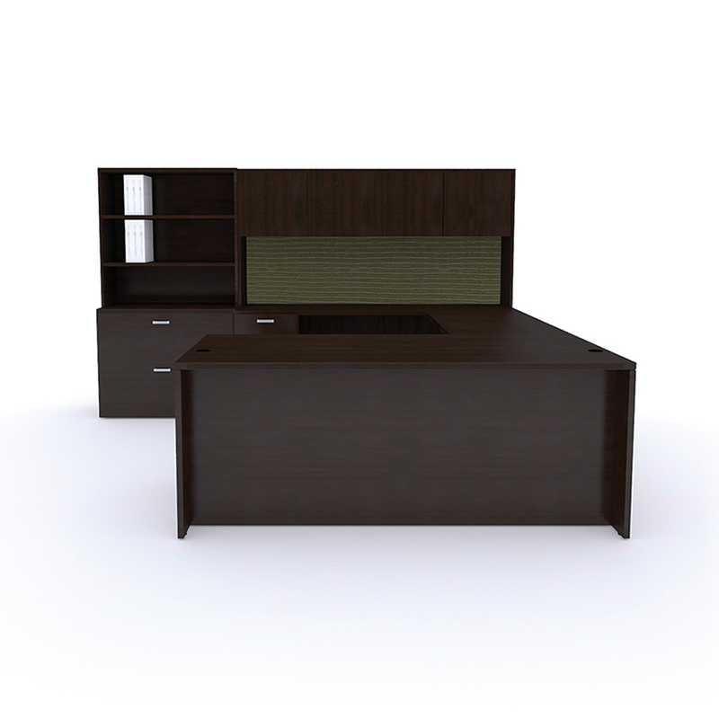 Construction: Tops, side panels and cases use 1” thick three ply balanced panels of particle board finished in premium grade thermofused melamine. File drawer fronts use ⅝” and drawer cases use ½” three ply construction in matching melamine.