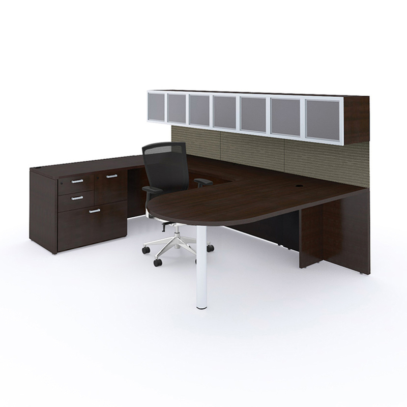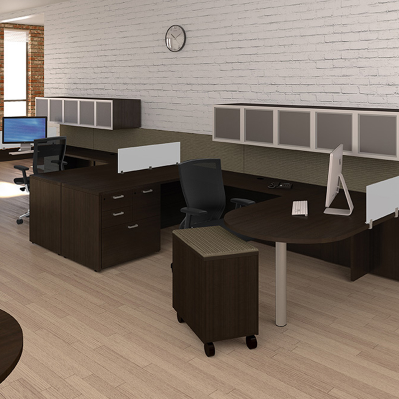 Statement of Line: Consists of desks, returns/bridges, bridge/knee-space credenzas, pedestals, hutches, door storage, bookcases, lateral files, wall mounted storage, conference tables, presentation boards and privacy screens.