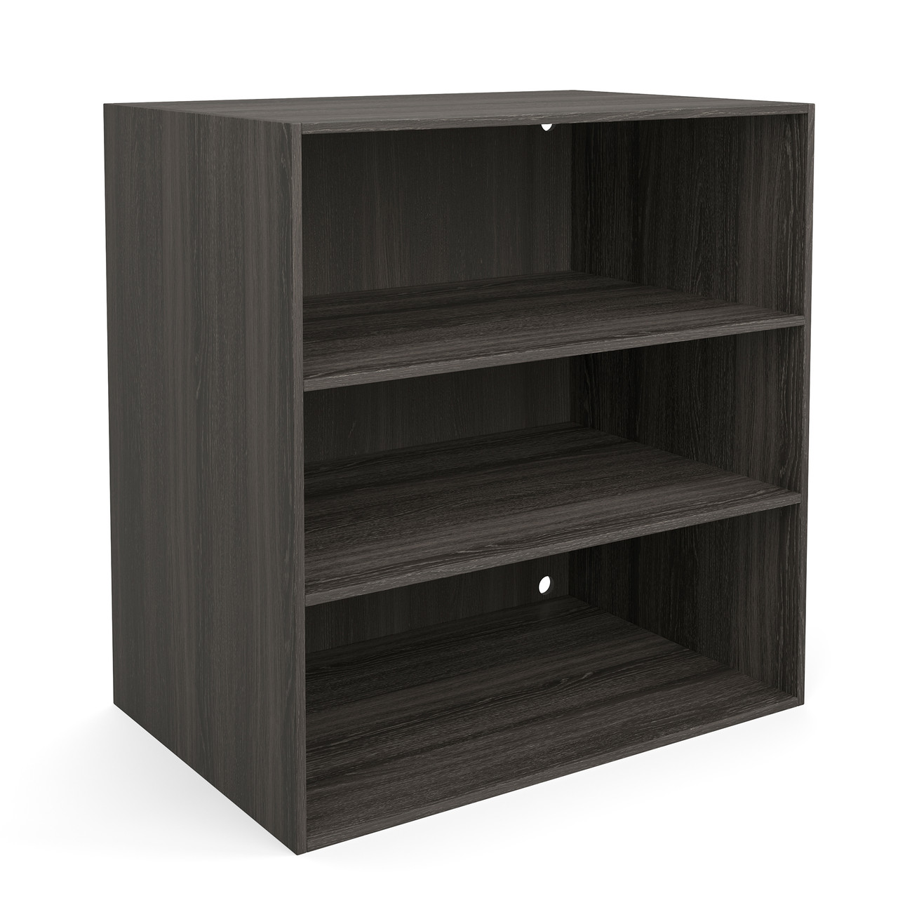 The OfficeSource Palisades Storage Cabinet in Gauntlet Gray with Graphite supports combines modern styling with functional storage. With its floating top and internal shelf, it works both as a display surface and a practical storage solution for contemporary office spaces.